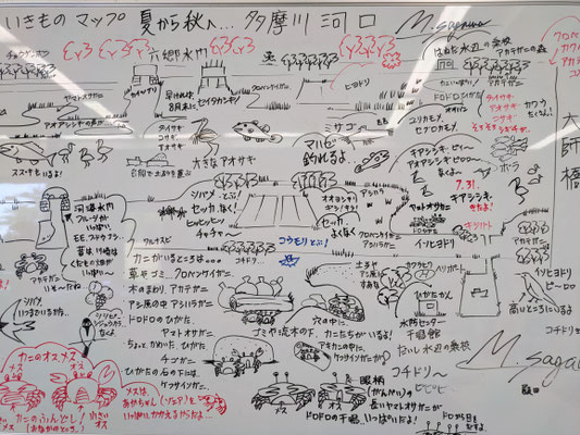 今回は干潟館内のホワイトボードのいきものマップをお知らせします。それにしても暑い夏ですね((+_+))いつまで続くのやら😥