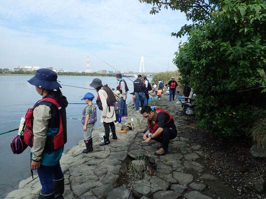 今年最後のだいし水辺の楽校ハゼ釣り教室。たくさんの参加者で